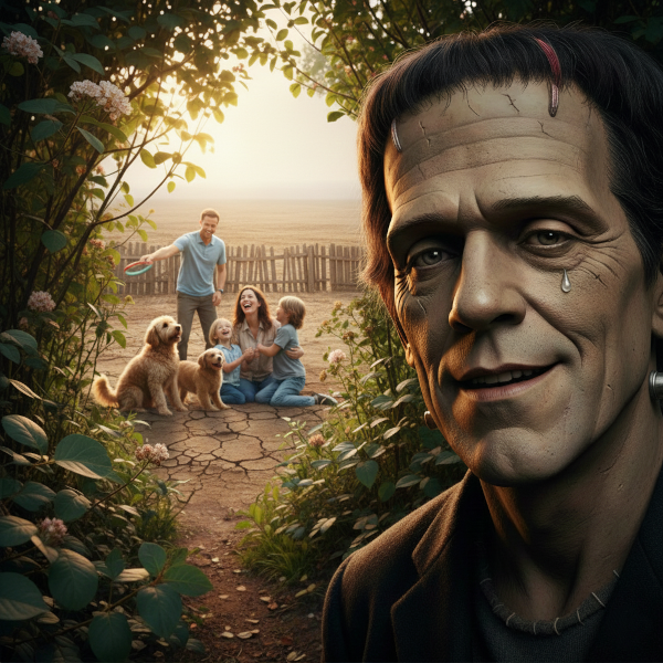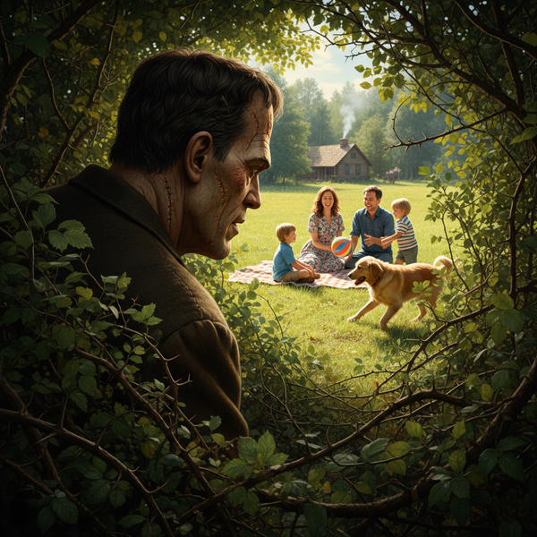 Meanwhile a creepy monster had been watching the family from the bushes...